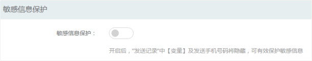 用戶點擊-【驗證碼通知短信】-【短信設置】-【敏感信息保護】,可以開啟敏感信息保護功能,開啟之后,用戶中心發送記錄的變量信息會將會隱藏。